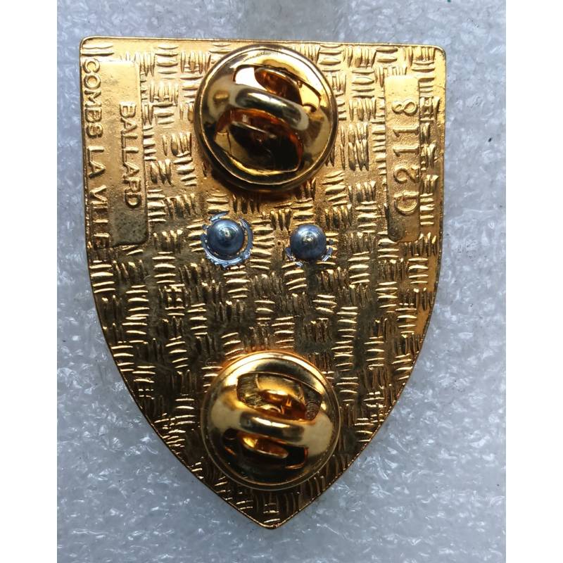 insigne injecté de couleur résine fabriqué par Ballard à Combs la Ville. Attaches type pin's