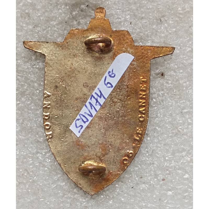 insigne émaillé fabriqué par Andor Le Cannet, dos lisse plat à anneaux