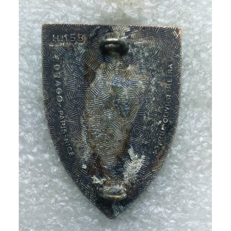 insigne émaillé fabriqué par Drago Paris Nice 43 rue Olivier Métra, dos guilloché à anneaux