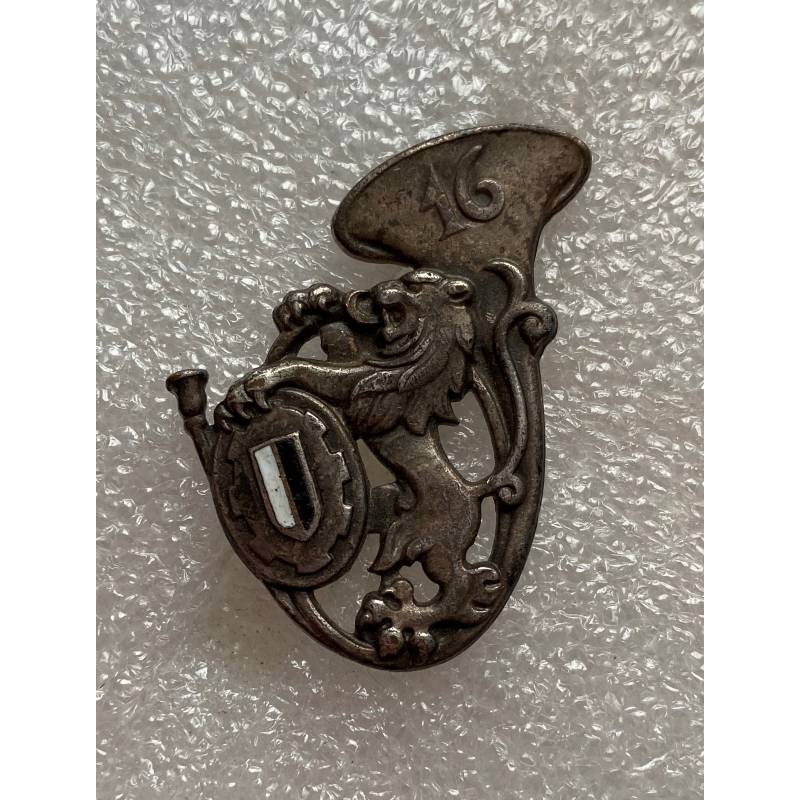 insigne argenté émaillé fabriqué par Drago Paris. Dos guilloché, épingle. Petit éclat émail
