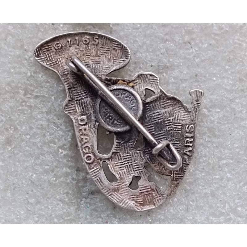 insigne argenté couleur résine fabriqué par Drago Paris. Dos guilloché embouti, pastille Drago