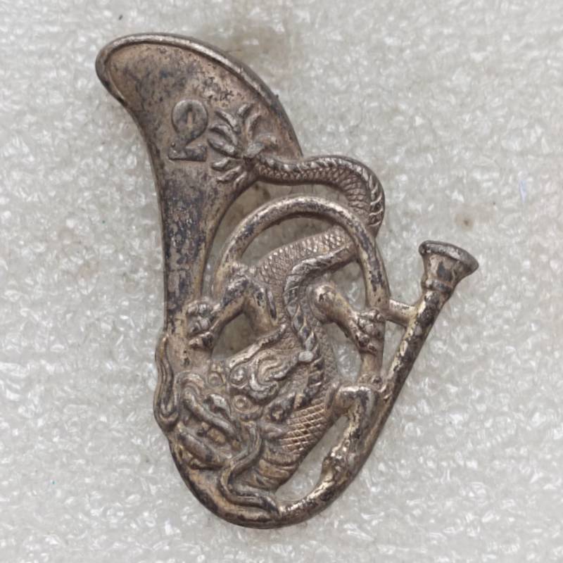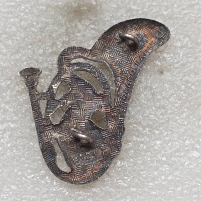 insigne injecté vieil argent fabriqué par Drago Paris, dos guilloché embouti à anneaux