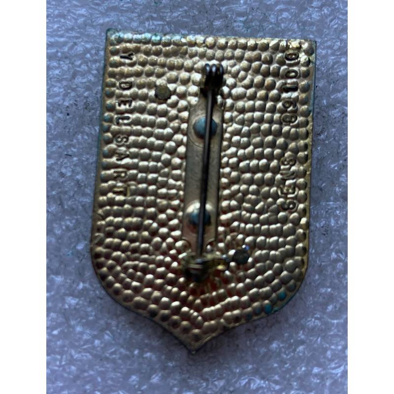 insigne injecté en 2 pièces fabriqué par Delsart à Sens, épingle rivetée à bascule