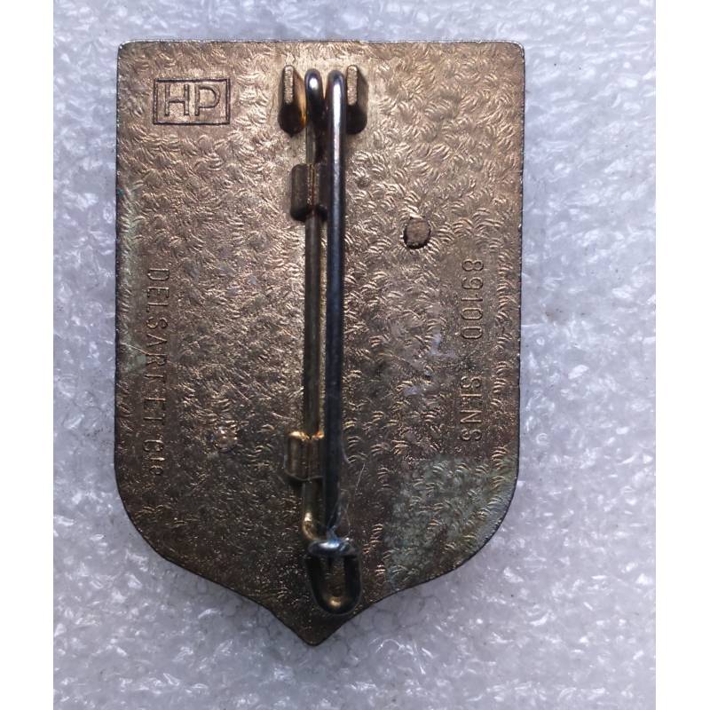 insigne injecté fabriqué par Delsart à Sens. Marqué HP, épingle sertie