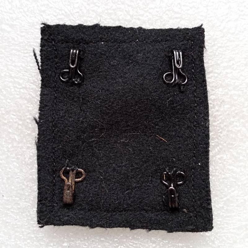 écusson tissé machine cousu sur fond noir avec 4 agrafes