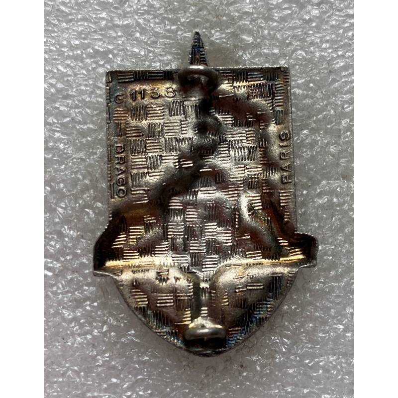 insigne écu émaillé fabriqué par Drago Paris. Dos guilloché embouti à anneaux