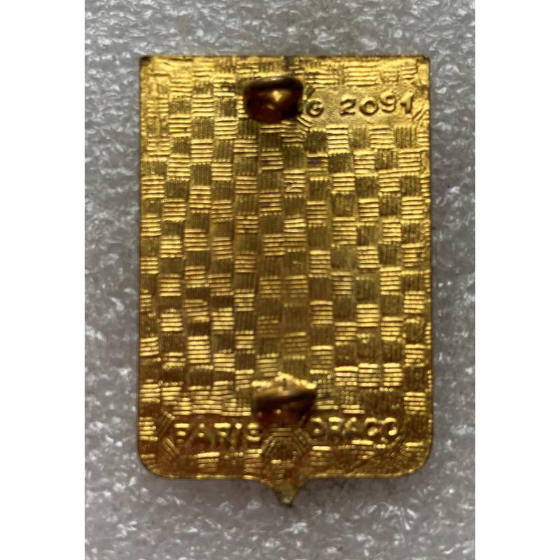 insigne de couleur résine fabriqué par Drago Paris. Dos guilloché à anneaux