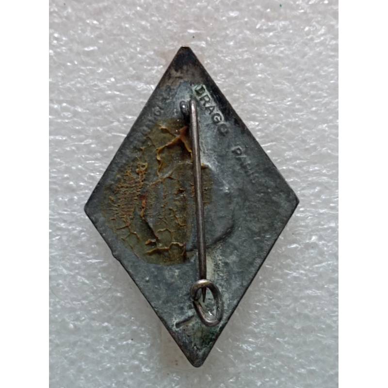 insigne émaillé fabriqué par Drago Paris 25 rue Beranger, dos et pastille enduit de plomb