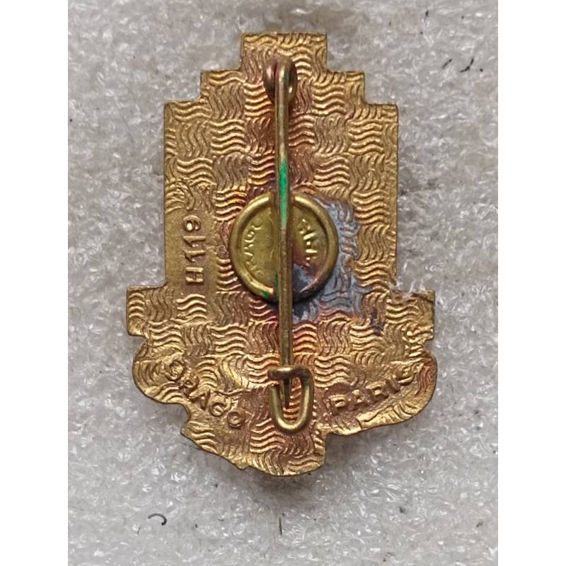 insigne émaillé fabriqué par Drago Paris, dos guilloché plat avec 1 pastille Drago