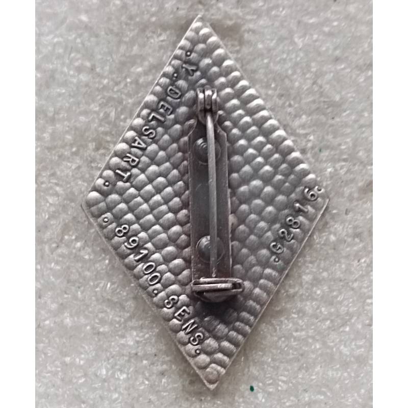 insigne injecté fabriqué par Delsart à Sens, épingle à bascule rivetée