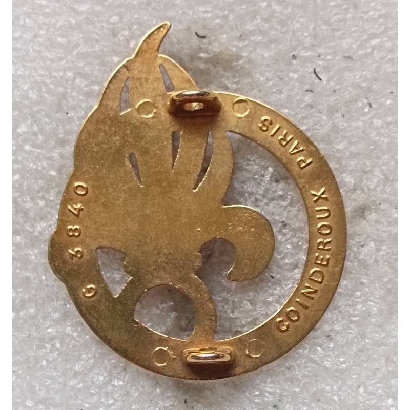 insigne injecté fabriqué par Coinderoux à Paris, dos à pontets