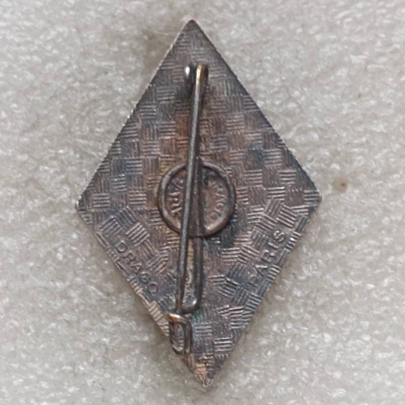 insigne émaillé fabriqué par Drago Paris, dos guilloché plat à pastille Drago