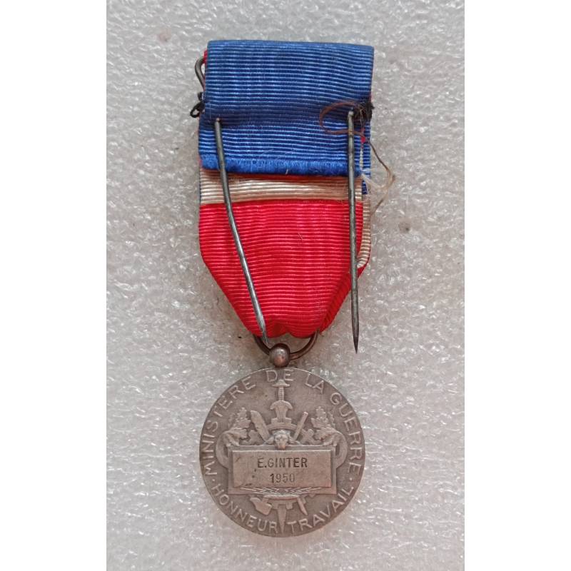 Ministère de la Guerre 2e modèle classe argent. Médaille d'Honneur des personnels civils du ministère de la Défense. Décernée en 1950
