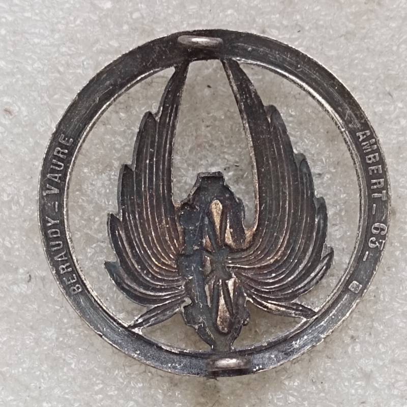 insigne argenté fabriqué par Beraudy - Vaure à Ambert, embouti lisse