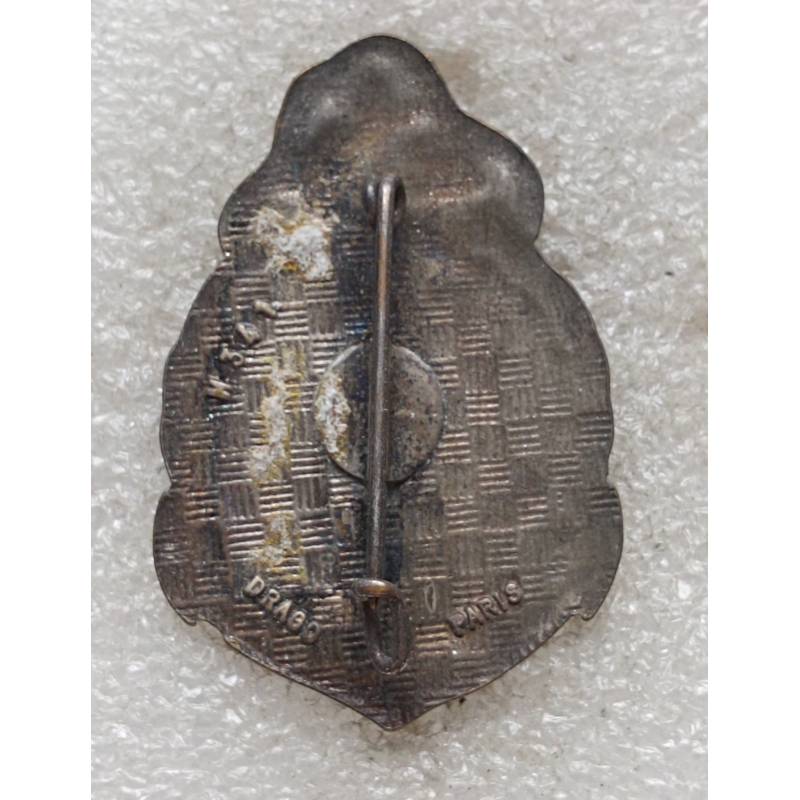 insigne émaillé fabriqué par Drago Paris. Dos guilloché à pastille lisse