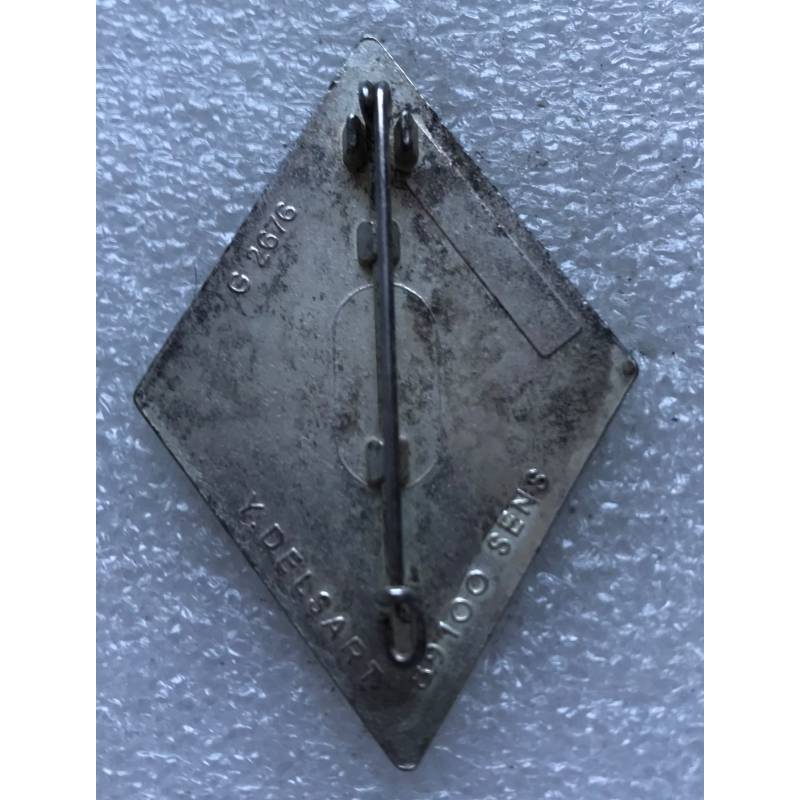 insigne injecté de couleur résine fabriqué par Delsart à Sens. Dos lisse avec attache.