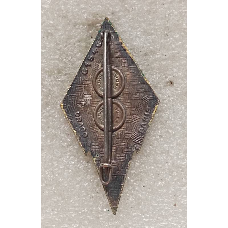 insigne émaillé fabriqué par Drago Paris. 2 pastilles Drago, dos argenté