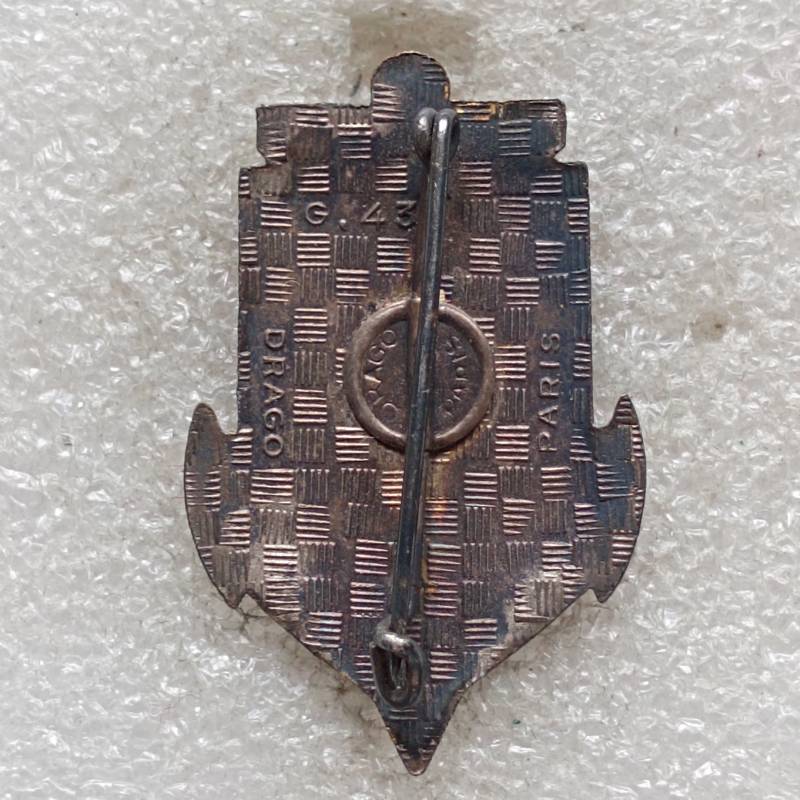 insigne émaillé fabriqué par Drago Paris, dos guilloché plat avec 1 pastille Drago
