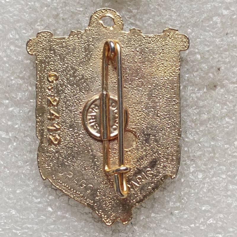 insigne injecté fabriqué par Drago Paris, dos grenu avec pastille Drago